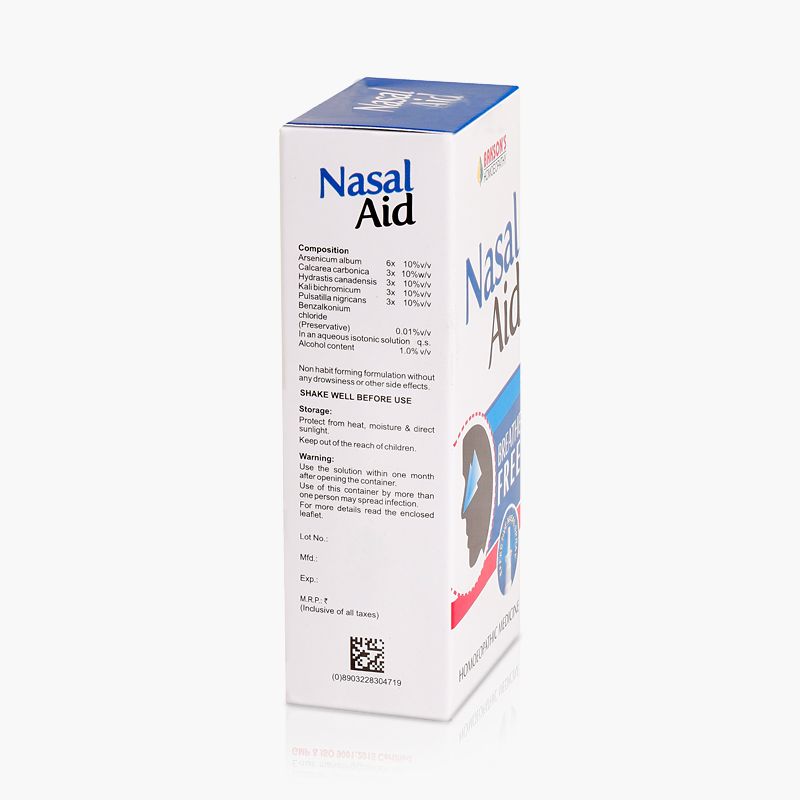 Dr. Bakshi’s Nasal Aid is an instant acting composition that provides symptomatic relief from nasal congestion. Its direct acting solution constricts the blood vessels in the nasal tissues, reducing swelling and feeling of congestion. It helps relieve: